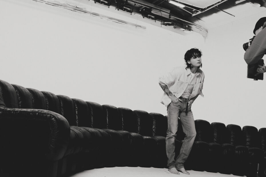 🐰:كان من المحرج بعض الشيء ارتداء سترة دون ارتداء اي شيء تحت الستره في مجموعة تصوير مع العديد من الأشخاص (يضحك).