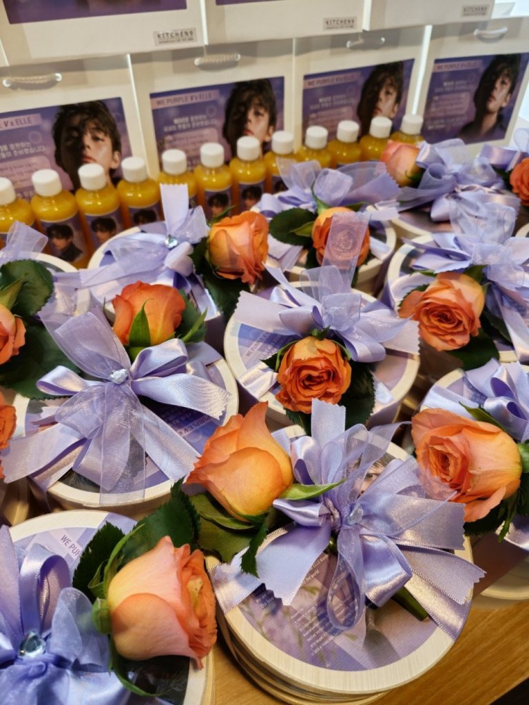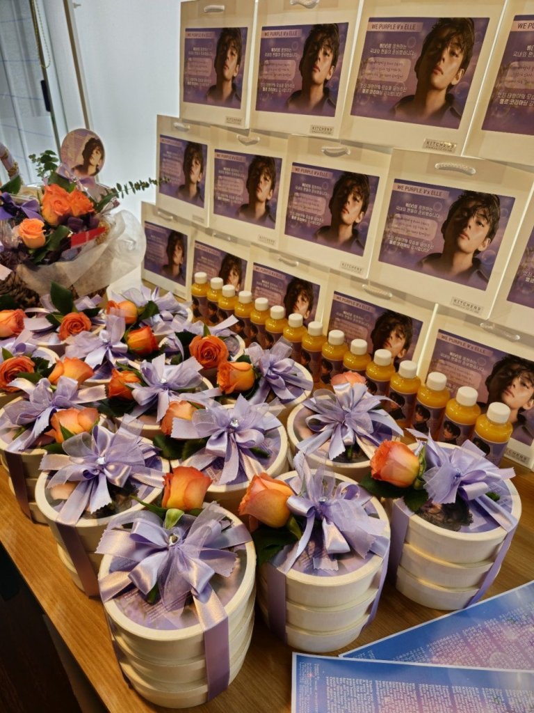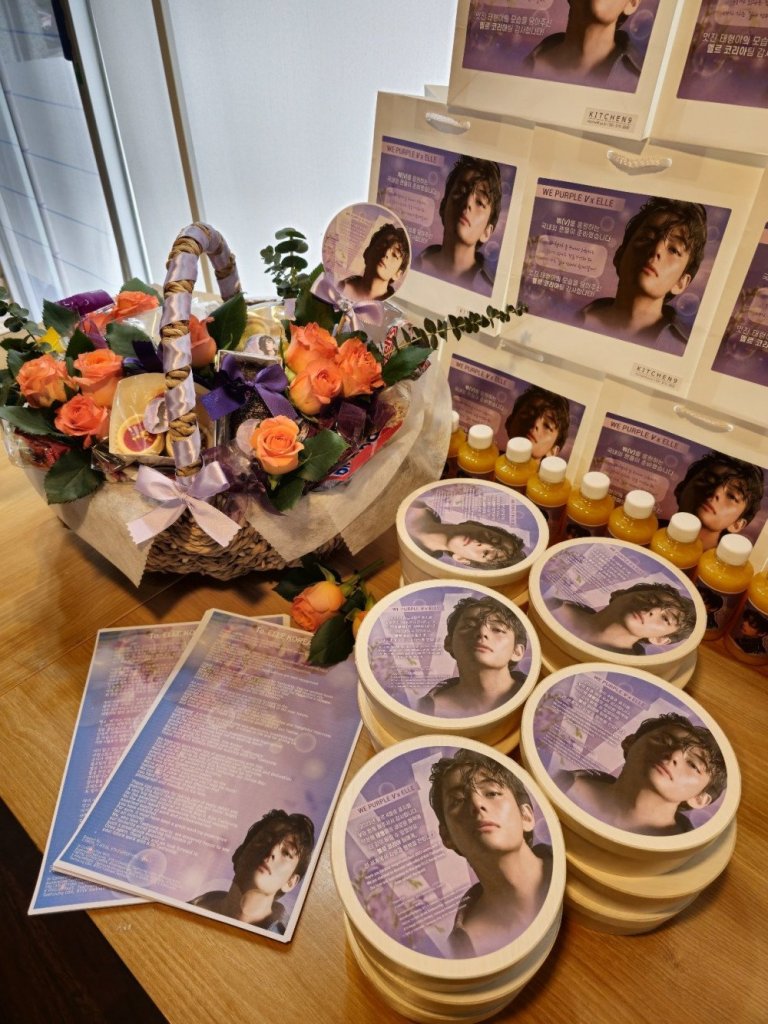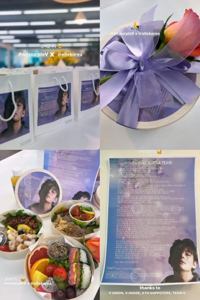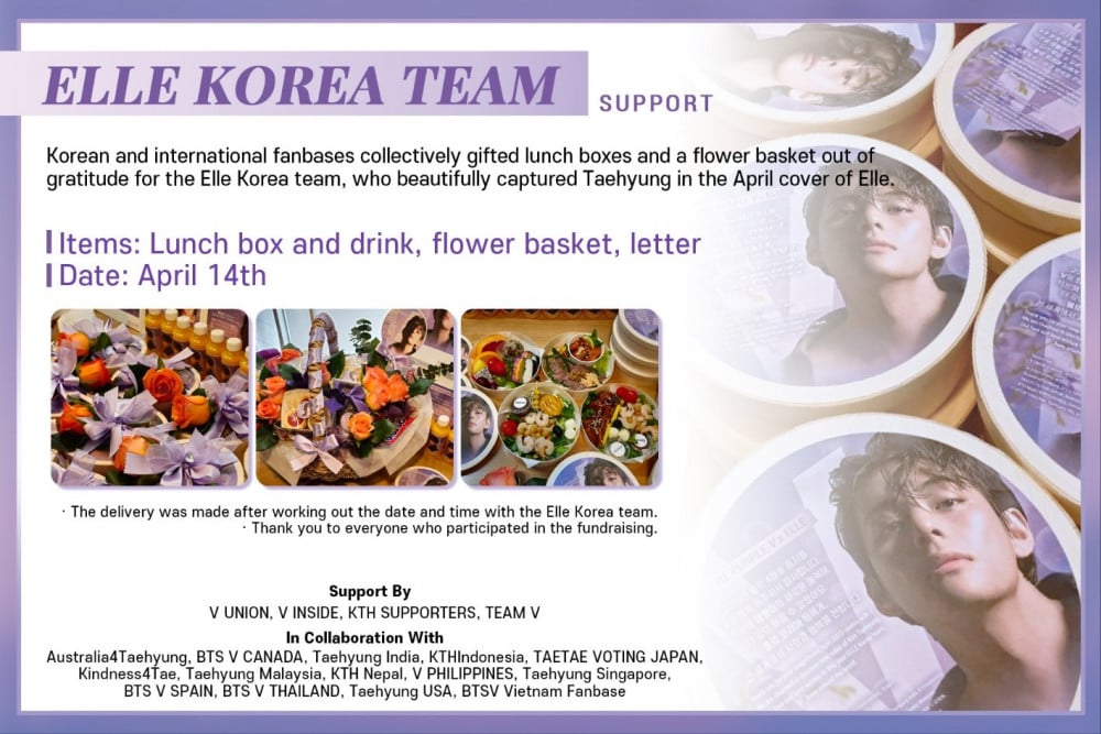 في 14 أبريل ، رتبوا تسليم أكياس الهدايا والزهور والأطعمة والمشروبات والرسائل القلبية من المعجبين حول العالم إلى كل عضو في فريق ELLE Korea. استقبل الفريق هذه البادرة بفرح ورحب بها بحرارة.