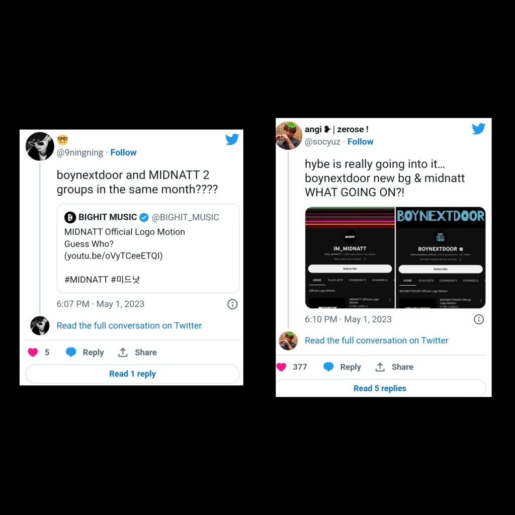 دفع هذا بعض المعجبين إلى التساؤل عما إذا كانت HYBE تخطط أيضًا لترسيم فرقة آيدول أخرى في المستقبل القريب ، MIDNATT.